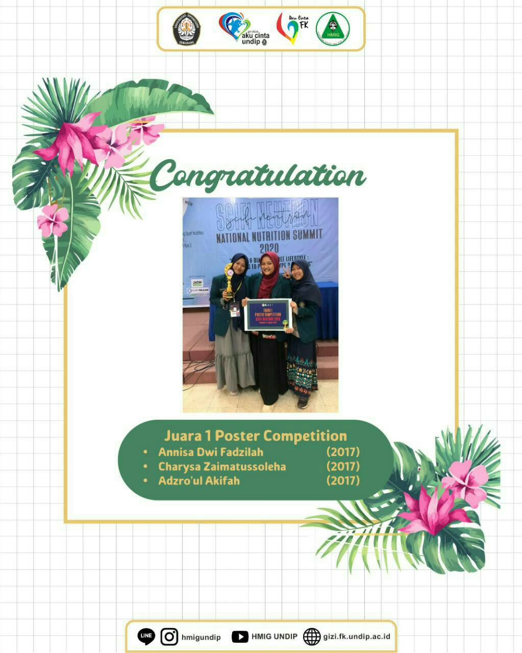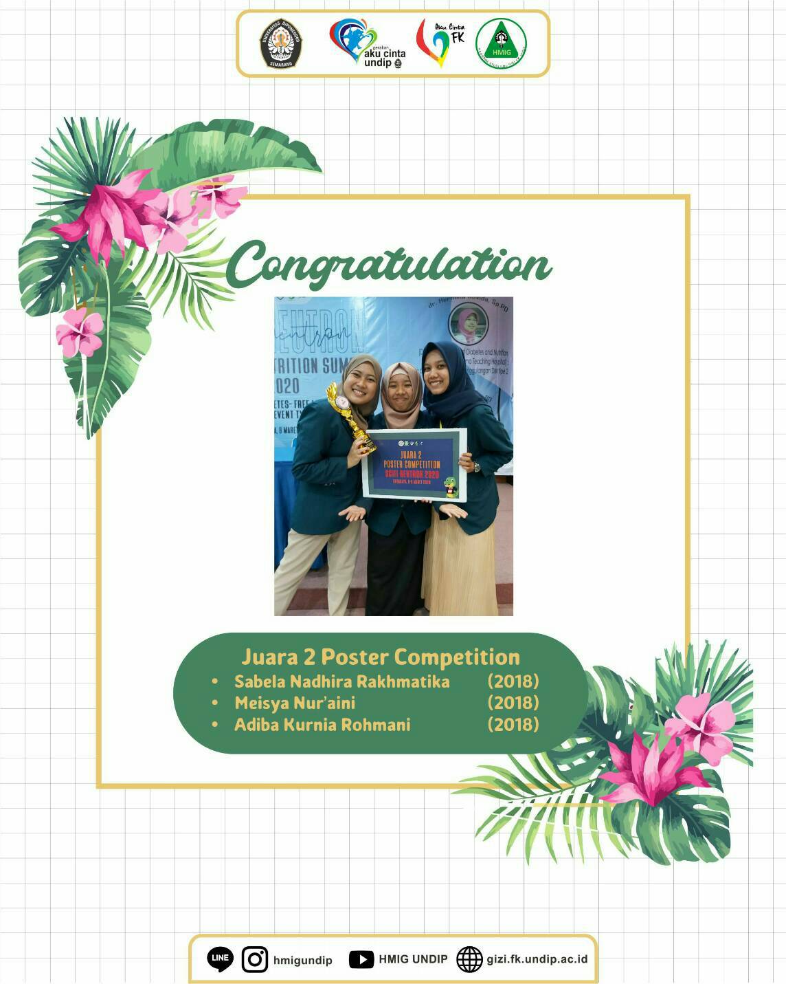 Kembali hadir nih kabar membanggakan dari mahasiswa gizi yang meraih beberapa juara di ajang: “SCIFI NEUTRON 2020”